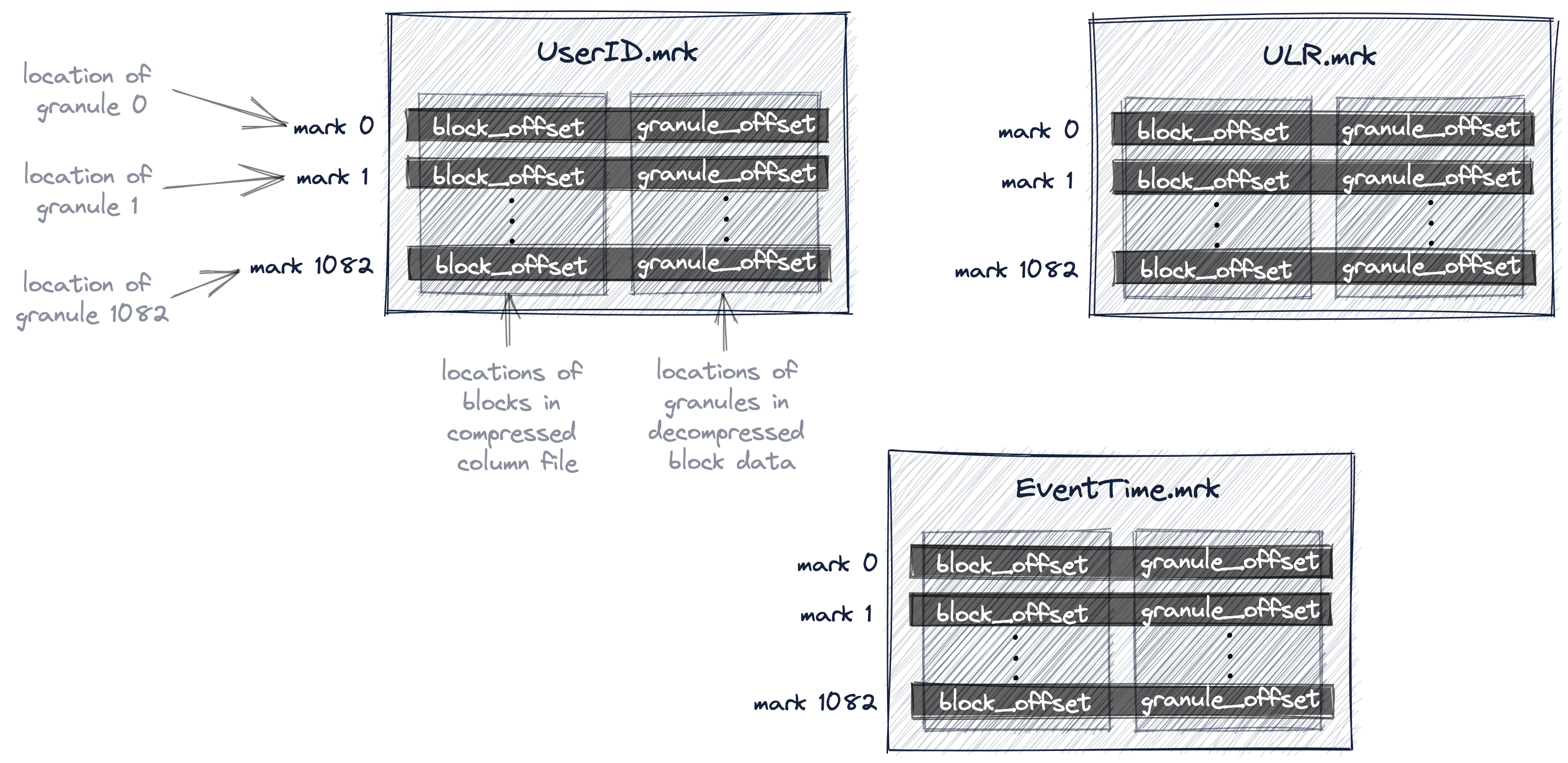 Мы нумеруем гранулы, начиная с 0, чтобы соответствовать внутренней нумерации ClickHouse, которая также используется для сообщений логирования.